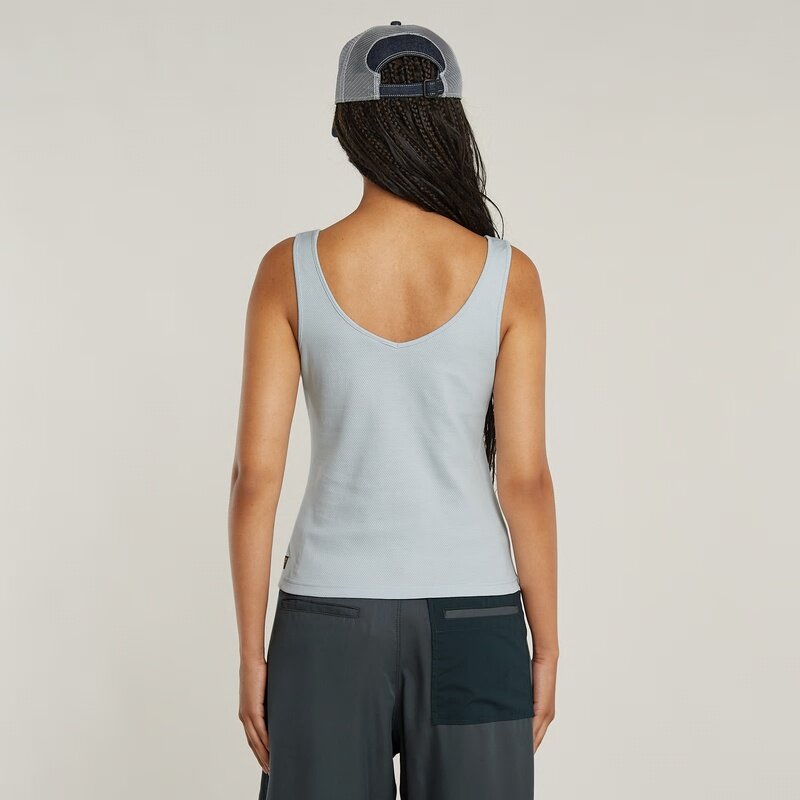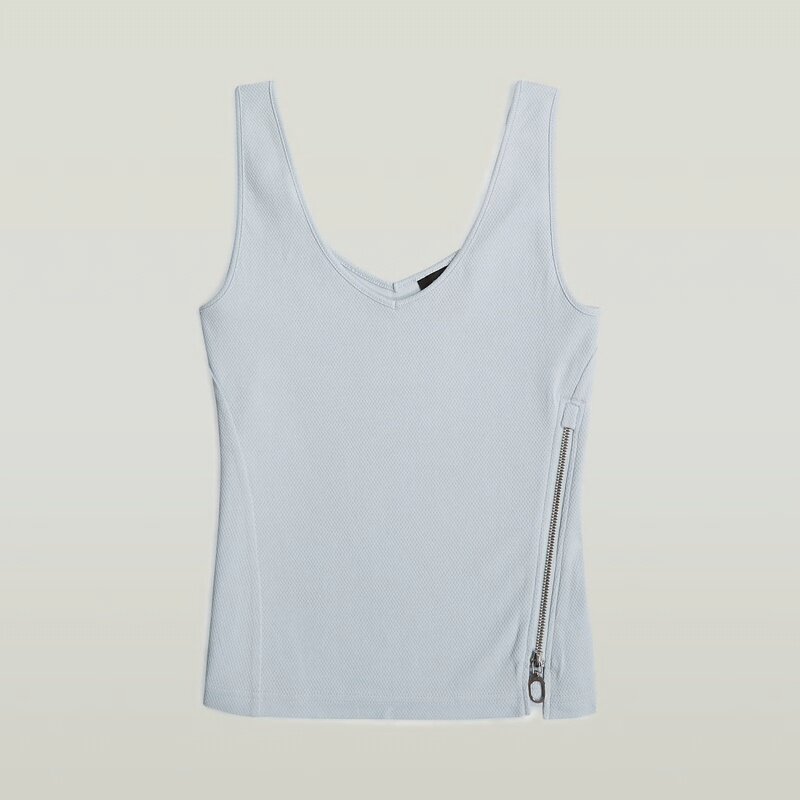 Tank top Asymmetrical Zip offers a slim fit with a rounded V-neck at the front and back. One of the diagonal seams is finished with a zipper closure.