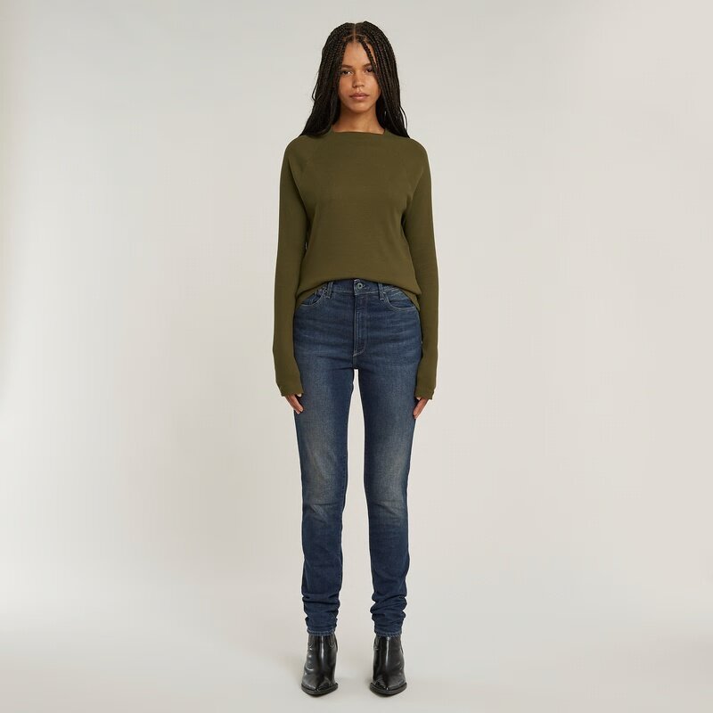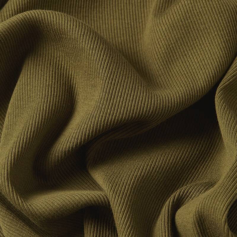 Mock top Rib offers a slim fit. The raglan sleeves show a slit at the hem. A rivet is placed at the slit end.