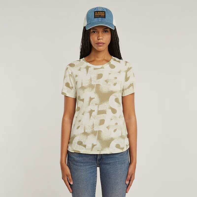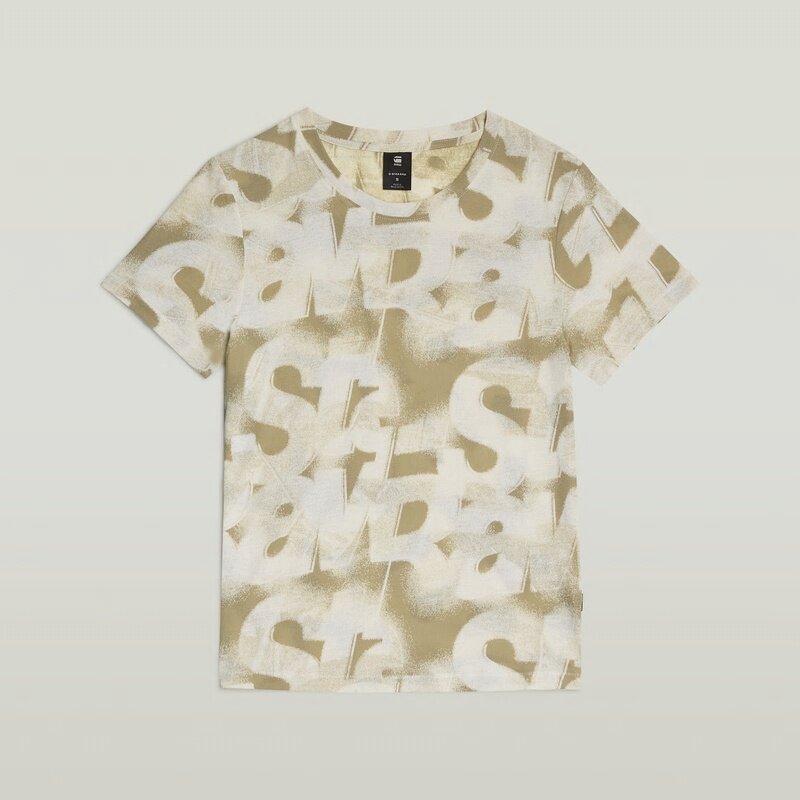 Top Sprayed Letters shows an allover printed graphic. Designed in a straight fit with a ribbed round neck.
